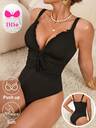 Swim DD+ 1 件女士性感塑形杯腰部褶皱修身泳衣,带贝壳肩带装饰,适合度假
