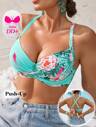 Swim DD+ 2 件套女士夏季随机花卉印花吊带聚拢钢圈上衣和高腰比基尼泳裤