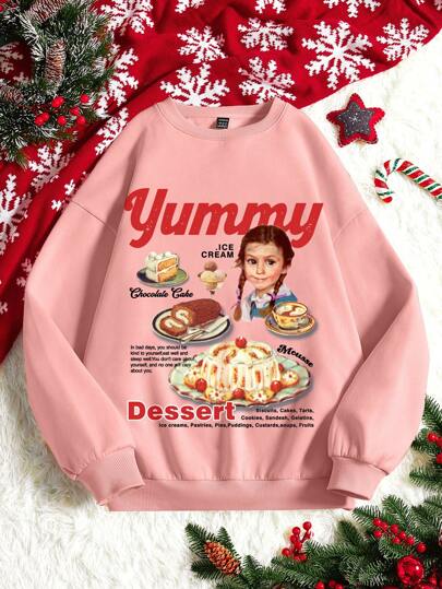 SHEIN EZwear 標語和人物圖案落肩袖運動衫 - 淺粉色 - 查看 1