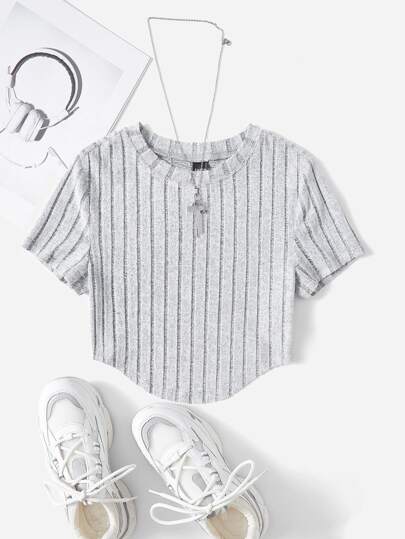 SHEIN EZwear 素色頭巾下擺短款T恤 - 淺灰色 - 查看 6