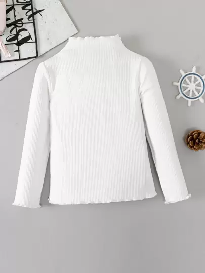 SHEIN Elladie kids 年輕女孩的寬條紋針織生菜邊立領T卹 - 白色 - 查看 1