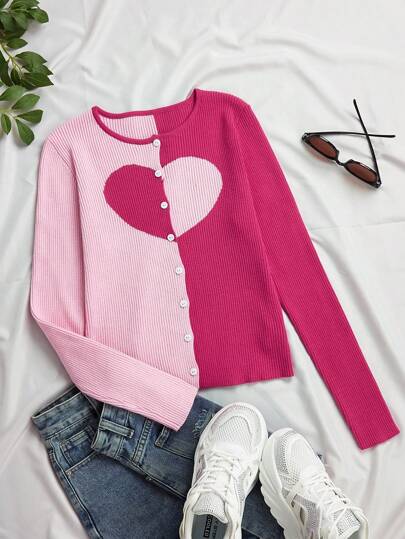 Chiquease 拼色長袖針織外套 - 玫紅色 - 查看 1