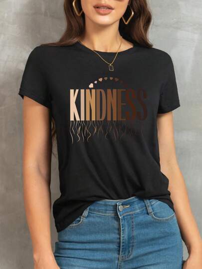 SHEIN Essnce 字母印花t恤 - 黑色 - 查看 1