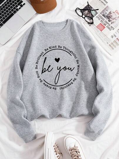 INAWLY 標語圖案加絨內裏運動衫 - 淺灰色 - 查看 1