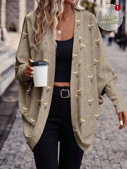 SHEIN Frenchy 女款复古清新雏菊秋冬大气印花轻薄外套,适合外出约会通勤 - 彩色 - 查看 1