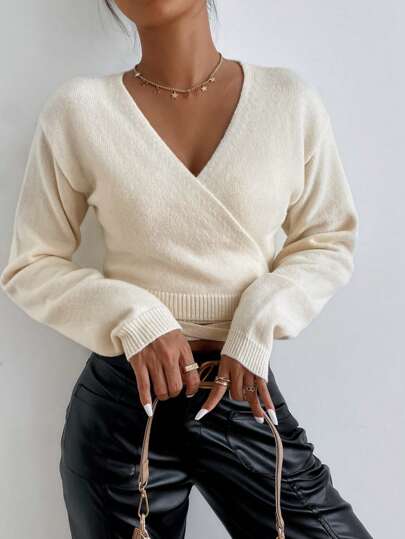 Chiquease 圍裹後綁帶開襟衫 - 米色 - 查看 1