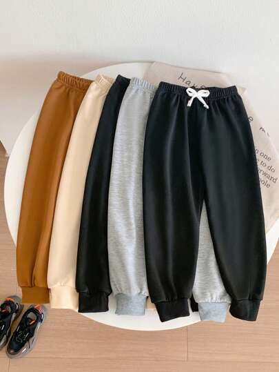 SHEIN Genkimix Kids 年轻男孩休闲罗纹腰带和踝部 5 片式运动裤 - 彩色 - 查看 1