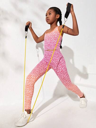 SHEIN 女童無縫針織豹紋背心長褲運動兩件套 - 彩色 - 查看 1