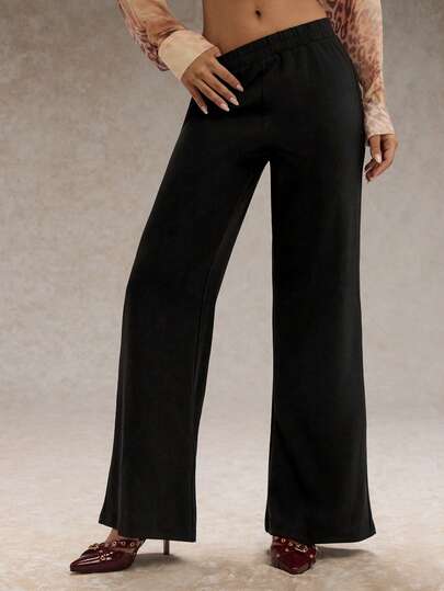 SHEIN Glamour 女式高腰修身针织裤 - 黑色 - 查看 5