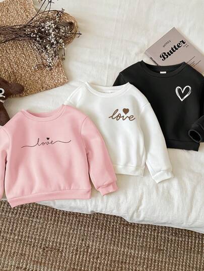 SHEIN Happikins 三件套女童休闲简约爱心图案加厚保暖长袖连帽衫,黑色、白色、浅粉色,适合秋冬季节穿着。 - 彩色 - 查看 6