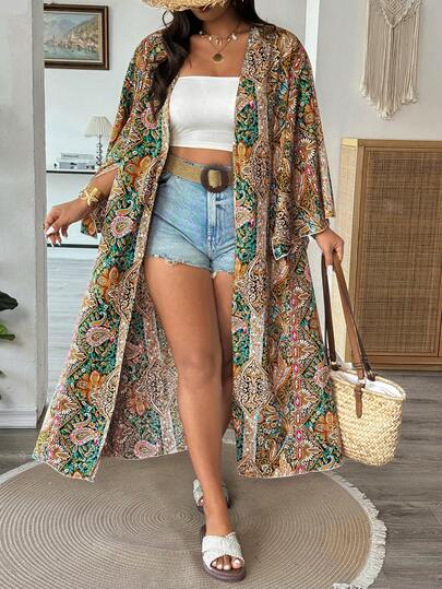 SHEIN Holidaya 大码女士优雅休闲通勤百搭长款宽松外套,春夏款 - 彩色 - 查看 1