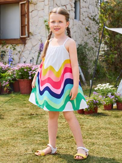 SHEIN 女童彩虹印花細肩帶A字裙,夏季適合夏令营,度假和炎熱天氣 - 彩色 - 查看 5