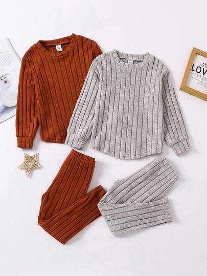SHEIN 女孩秋冬季的簡潔舒適兩件套裝 - 彩色 - 查看 1