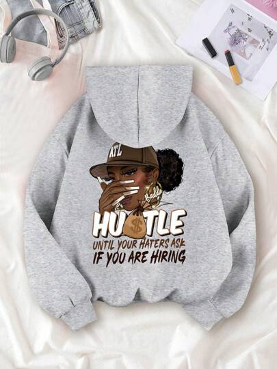SHEIN LUNE 人物印花長袖連帽衫 - 淺灰色 - 查看 5