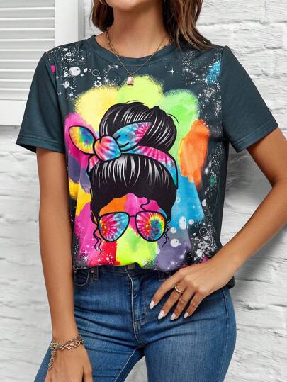 SHEIN LUNE 人像圖案T恤 - 彩色 - 查看 1