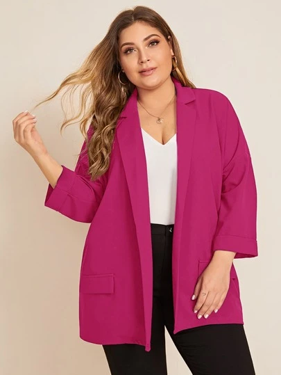 SHEIN LUNE 大碼落肩捲邊袖西裝外套 - 玫紅色 - 查看 1