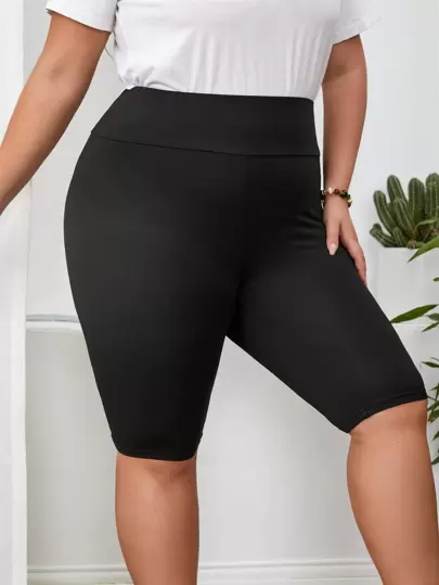 SHEIN LUNE 大碼寬腰帶騎行褲 - 黑色 - 查看 1