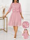 SHEIN Lady 女式纯色圆领网眼拼布喇叭下摆修身优雅连衣裙