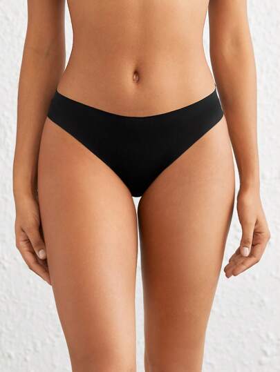 Ocili 極具彈性和光滑的無接縫實色低腰迷你三角褲-黑色 - 黑色 - 查看 1