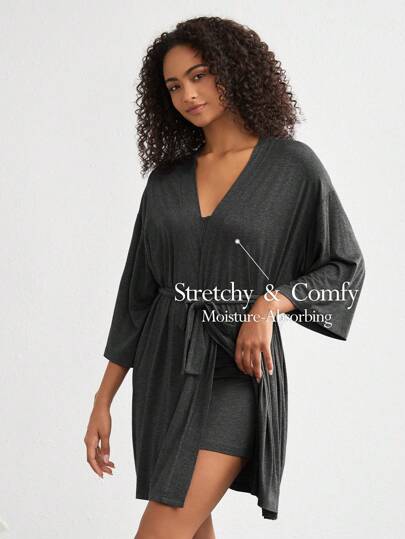 Ocili 超柔軟混紡平紋浴袍,適用於光滑的家居服睡衣 - 深灰色 - 查看 2