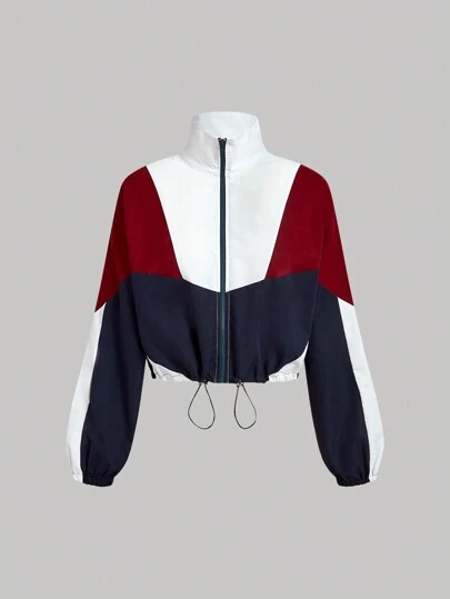 SHEIN MOD 休闲拼色街头风格女装夹克秋冬女装 - 藏蓝色 - 查看 1