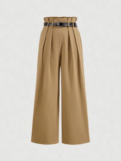 SHEIN MOD 高腰复古直筒棕色长裤,休闲日常装,秋冬女装下装,商务休闲女装,90 年代装,返校节,韩国时尚,办公室装,文艺复兴,老钱风格,舞会,,哥特,节日 - 棕色 - 查看 1