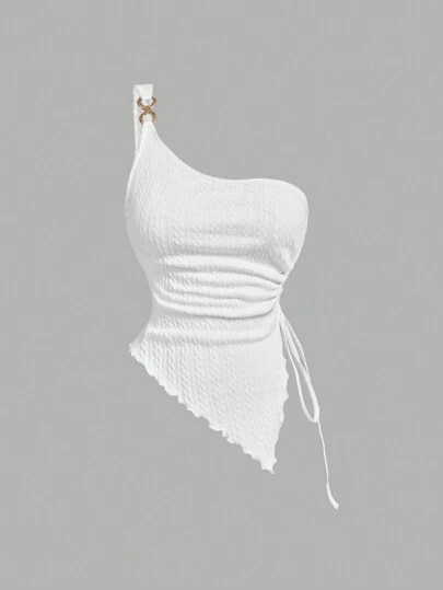 SHEIN MOD 白色提花针织可爱复古女式上衣女式背心女装白色性感上衣 - 白色 - 查看 1