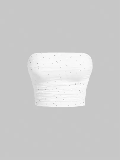 SHEIN MOD 女性亮片拼接無肩帶上衣 - 白色 - 查看 1