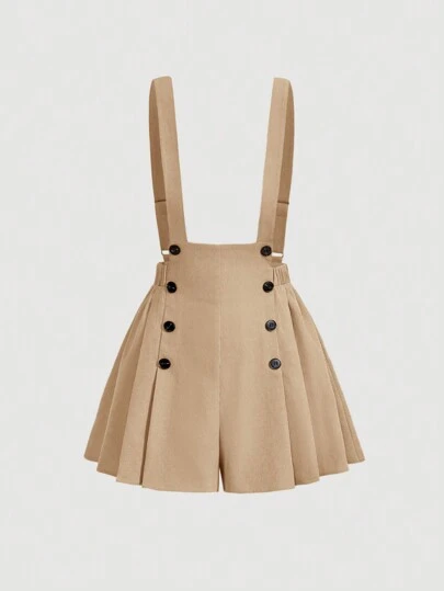 SHEIN MOD 女士雙扣帶褶皺裙 - 杏色 - 查看 1