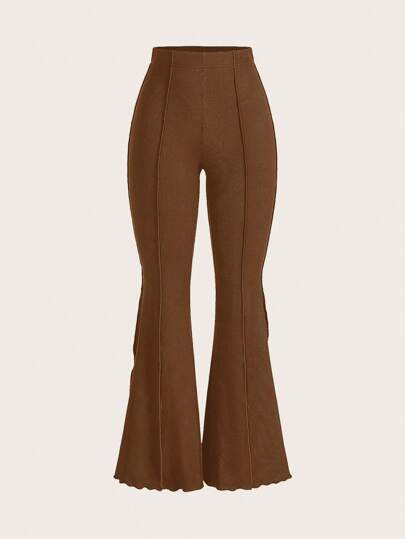 SHEIN MOD 女士弹力喇叭裤,带荷叶边装饰 - 咖啡棕 - 查看 1
