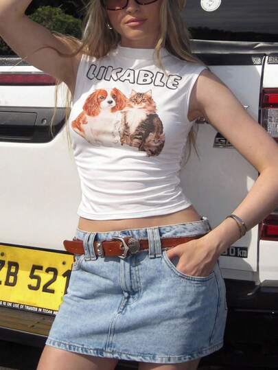 MainGRL 春夏休闲白色宠物狗印花无袖背心