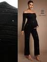 MaterniChic 1 套孕妇摄影露肩长袖上衣和松紧腰美人鱼裙,适合摄影、肖像,黑色