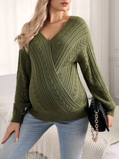 SHEIN 孕妇裹颈落肩毛衣,适合冬季 - 軍綠色 - 查看 1