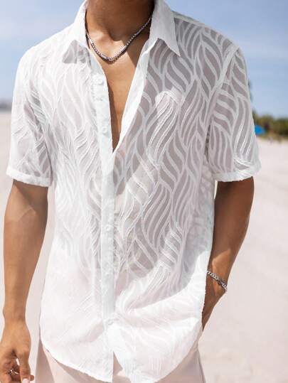 Manfinity RSRT 鬆身男士純色釦扣襯衫(不含t恤) - 白色 - 查看 2
