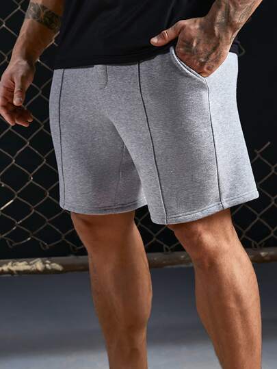 Manfinity 男士頂針腰部抽繩短褲 - 淺灰色 - 查看 1