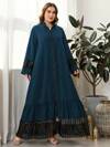 Al Najma 大码女士优雅拼接蕾丝前开襟长袍,秋季
