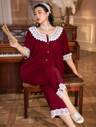 PalaceNights 复古宫廷风天鹅绒蕾丝边女士冬季睡衣套装,舒适优雅的细节设计,秋冬服装,蓬松柔软