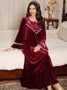 PalaceNights 复古宫廷风花卉刺绣荷叶边领丝绒睡袍+吊带裙套装,秋冬蓬松睡衣套装,女士睡袍睡衣套装,舒适家居服