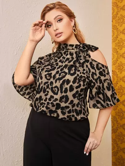 SHEIN Clasi 大碼豹紋印花不對稱襯衫 - 彩色 - 查看 1