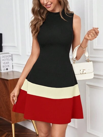 SHEIN Privé 撞色小高領洋裝 - 紅色 - 查看 1