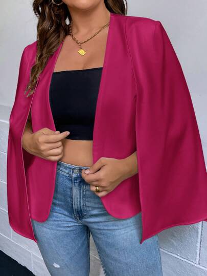 SHEIN Privé 大碼斗篷袖開門襟西裝外套 - 玫紅色 - 查看 1