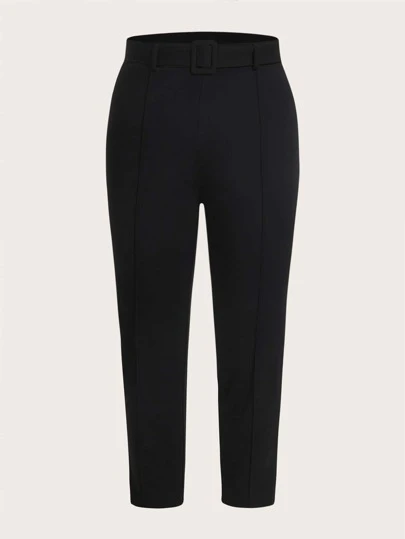 SHEIN MOD 大碼素色腰帶長褲 - 黑色 - 查看 1