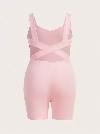 SHEIN EZwear 大碼素色彈力緊身連體短褲 - 淺粉色 - 查看 4
