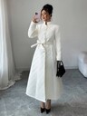 Rafferiza 女士宽松V领荷叶边下摆长袖长袍,土耳其长袍,阿拉伯长袍