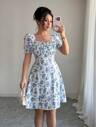 Rafferiza 时尚简约方领泡泡袖烫金印花长裙,春夏