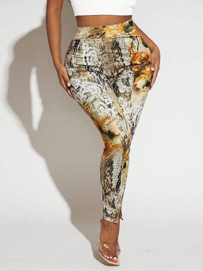 SHEIN SXY 混合印花高腰緊身打底褲 - 彩色 - 查看 1