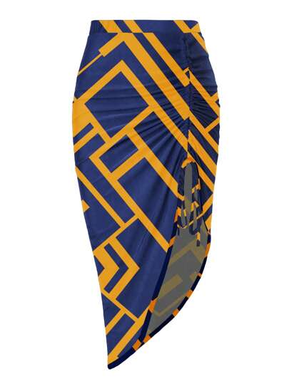 Maweii 大碼幾何印花抽繩不對稱下擺半身裙 - 藏蓝色 - 查看 2
