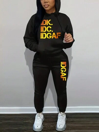 INAWLY 女士簡約印花2件套裝 - 黑色 - 查看 1