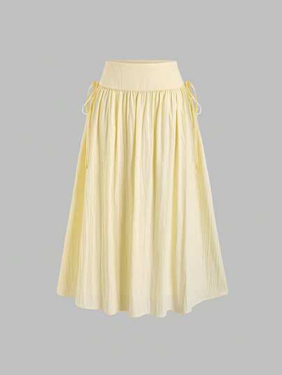 Sweetra 女士甜美度假风黄色半身裙,春夏秋季