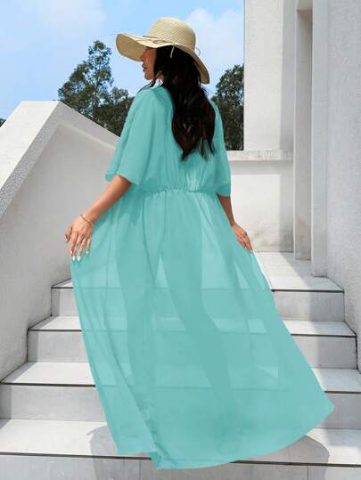 SHEIN Swim 纯色长假海滩和服'夏季 - 薄荷綠 - 查看 3